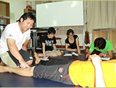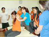ここで教えているタイマッサージは、バンコクスタイルとチェンマイスタイルもミックスで、両者の利点をベースに日本人向けに改良を加えたものということだ。初めはシンプルで安全なバンコクスタイル(ワットポー式)を覚え、身体の使い方が十分に習得できた後に、チェンマイ式の手技の中から、高度で複雑な技を少しづつ習得していくというカリキュラムだ。ということは、基礎的なレベルを指導しているに過ぎないのが残念だ。